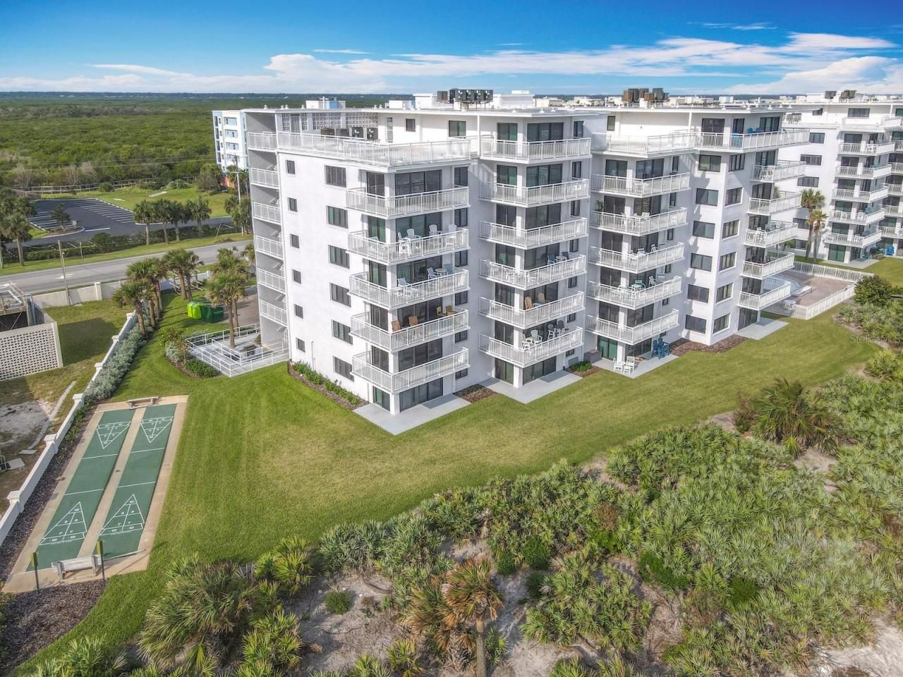 Step into this furnished two-bedroom, two-bath condo positioned on the desirable South No Drive Beach of New Smyrna Beach within Shorehom By the Sea's fully restored South Building. Enjoy sunrise views from the spacious corner balcony, a quiet, elevated vantage point over the ocean.The residence is fully furnished with coastal finishes and move-in ready, providing flexibility for personal use, seasonal enjoyment, or rental income where permitted. Recent building improvements for peace of mind and modern coastal living in a well-established beachfront community.Repositioned to meet today's market, this is an opportunity to secure a No Drive Beach condo with strong value, location, and long-term appeal.