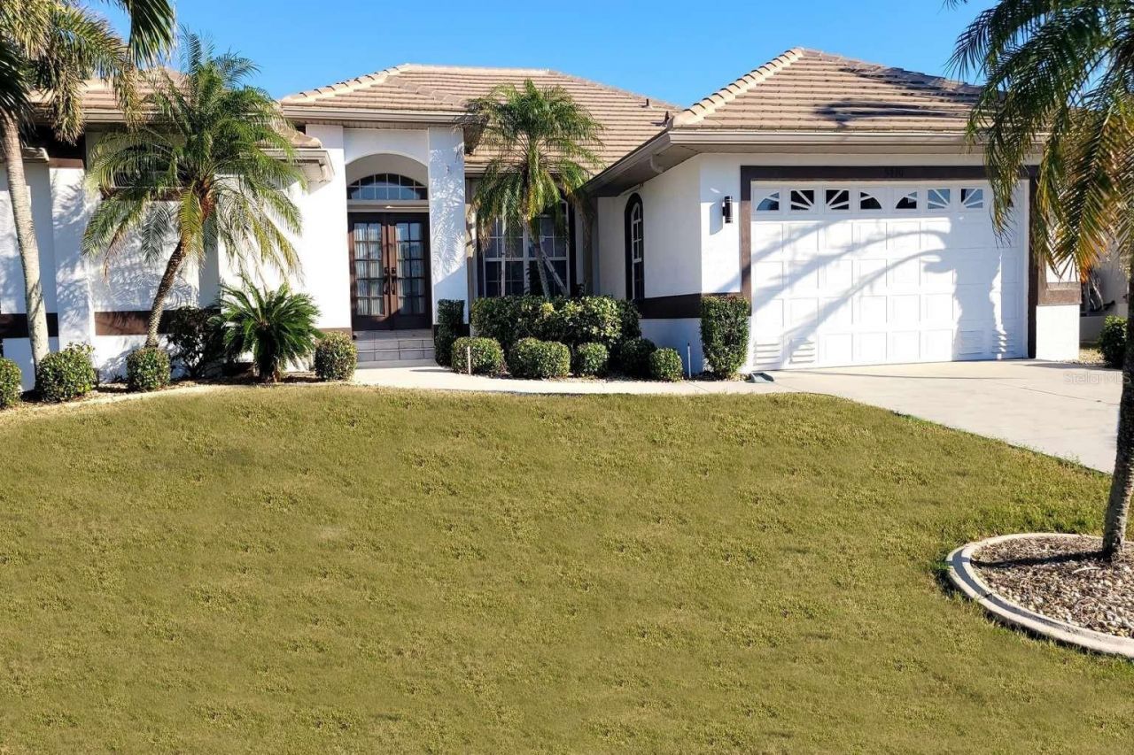 PGI SAILBOAT WATERFRONT HOME WITH INSTANT ACCESS TO OPEN WATER!! Reach open water in mere minutes via Buckley's Pass. HIGH & DRY ELEVATION has protected this home from flooding! This spacious, 3 bed/2.5 bath SAILBOAT WATERFRONT home is in the prestigious community of Punta Gorda Isles w/NO HOA FEES; Ideal for the avid boating enthusiast! This property is sited on a wide turning basin! Start experiencing some of the best boating in SW Florida in under 5 minutes from your backyard! Or easily enjoy the fantastic fishing accessible from your private dock, just steps from your back door. The seawall & canal dredging are maintained by the City of Punta Gorda! Inside the home boasts an open floor plan w/over 2,000 sq ft. of living space featuring a formal living room, formal dining room, central kitchen w/adjacent breakfast nook & separate family room. The kitchen is the heart of this home -opening to the living room, dining room, breakfast nook & family room - creating the ideal layout for entertaining. The kitchen has an extensive breakfast bar, ample cabinet & counter space plus a large pantry closet. Mitered window in the breakfast area offers unobstructed views of both the pool & waterway beyond; a perfect location to enjoy your morning coffee! Architectural details include Soaring Cathedral Ceilings, NEW Wood-look Luxury Vinyl Plank Flooring in the family room & bedrooms, plus TONS OF NATURAL LIGHT thanks to expansive windows and the many sliding glass doors that open to the pool with serene canal views. The master suite presents a walk-out entry to the lanai, two oversized walk-in closets & a large en-suite bath. The master bath features dual sinks, lots of cabinets, jetted corner tub, walk-in shower, linen closet & private water closet. The split-bedroom layout offers privacy for owner & guests. The interior laundry room has additional storage cabinets & doubles as a mudroom w/direct access to the garage & kitchen. When opened, the 8 ft. sliding glass doors in the master bedroom, living room & family room, will extend your living space so that you experience the true Florida-style, of indoor/outdoor living. Large, covered area of the oversized lanai overlooks the in-ground pool which was resurfaced in 2021. The pool has a waterfall feature that creates a very tranquil atmosphere. Half bath on the lanai is perfect for the pool goers, keeping the inside of your home dry; while the outdoor lanai shower permits you to tidy up after a day spent on the boat or relaxing poolside before entering the home! The lanai storage closet is ideal for tucking away pool/boat supplies. The SE rear exposure of the home offers some magnificent sunrises. Other amenities include an attached two-car garage, Hurricane Protection & well-maintained tropical landscaping. TONS OF UPGRADES/UPDATES includes New Roof (2023,) Exterior House Painting (2025), High-Efficiency AC w/10-yr Parts & Labor Warranty (2025), Water Heater (2022), Window Treatments (2024), Garage Door Opener (2024), Kitchen Appliances: Dishwasher (2024), Refrigerator (2021), Washer (2024) & Dryer (2023). Bathroom Faucets (2024), Guest Bathtub (2024), Toilets (2024), Digital Pool Timer (2024), LVP Flooring (2024) & Pool Cage No-see-um Super Screen Installed (2023). Enjoy NO HOA FEES! Direct flights into Punta Gorda airport make this a perfect location. The resorts, fishing, local venues, restaurants & golf courses are minutes away. Home is in MOVE-IN READY CONDITION w/ many updates.