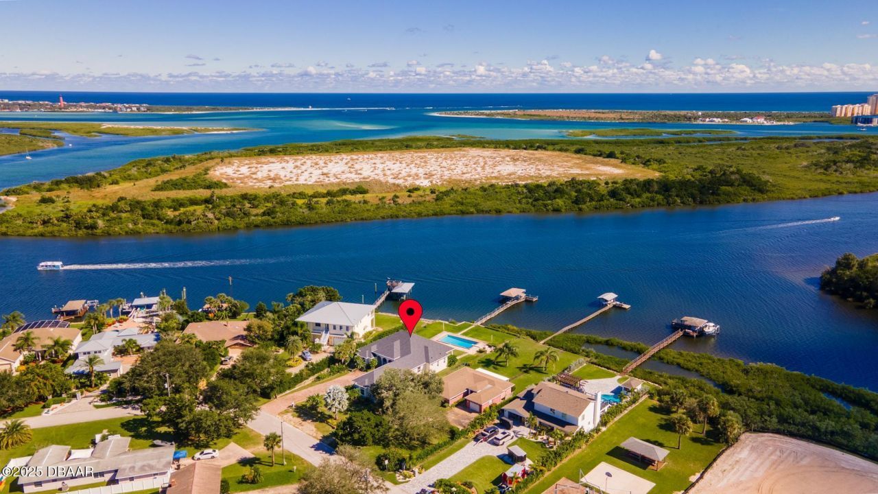 New Smyrna Beach deepwater at it's very best. Arguably the most sought after parcel in the beloved Inlet Shores community, this point lot gives way to long range water views down the Intracoastal and provides a front row seat to the wildlife and boat traffic that parade by daily. The custom 4 bedroom, 3 bath home with 3 car garage is perched on a gentle bluff with a fabulous waterfront lanai that serves as the owners' outdoor living room just above the pool, sprawling green lawn and new dock. Over the last year the owners have made a significant investment while the home underwent a complete interior and exterior renovation transforming it into the phenomenal property presented here. The photos are lovely, but this property must be seen in person to be appreciated as no stone was unturned while contractors embarked on the tremendous task under the direction of a talented designer. MORE... Enter the home to be immediately greeted with panoramic water views through oversized windows and doors that create a wall of glass under volume ceilings. The main living and dining areas are all situated around the spectacular custom kitchen with stunning quartzite appointed over custom cabinetry complimenting the coastal contemporary interior spaces with a layout that is ideal for day to day relaxation or entertaining a crowd. The waterfront owners' suite is a true retreat with direct access to the covered patio and private spa. A cavernous walk-in with custom closet systems is just adjacent to the fantastic built-in wardrobe which sits just inside of the new luxury bath. Bedroom two is currently used as a home office and exercise room with a convenient optional door just off of the primary bath. A poolside waterfront guest suite is tucked into a quiet corner of the home with glass doors that open onto the covered patio and pool beyond. An adjacent bath services the guest room and doubles as a pool bath with an exterior door. The generous fourth bedroom is opposite a beautiful common bath. The architect left plenty of room for the imagination with a staircase leading to an unfinished bonus room above the garage that is currently vast storage, but could easily be finished as a 5th bedroom, game room or den. Step outside for unparalleled views of the water where the Intracoastal Waterway and Hunter Creek intersect and two natural mangrove shorelines create a serene backdrop that will never be developed. Truly an ideal position for a boater, sailor or yachtsman just inside of Ponce Inlet with a direct shot to the Atlantic Ocean through Rock House Creek in an outboard or a slightly lengthier course via the marked channel. The newly constructed and highly engineered dock with 16000 lb lift and floating staging dock below has over 10' of water at low tide. On a falling tide, the baitfish from the estuary of Hunters Creek mingle with the larger river directly in front of the dock and it is not uncommon to see the surface of the water explode in a feeding frenzy. Whether fishing the mangroves, relaxing on Disappearing Island or heading out the inlet on the way to The Bahama Islands, there is not a more perfect location in this part of Florida than 59 Cunningham Drive. This 2009 built solid concrete block home warrants a personal visit to be appreciated and to realize the high level of renovations that include the entire interior with top of the line appointments, new impact windows and doors, new air conditioning systems, roof, dock and newly renovated paver appointed, heated, saltwater 30,000 gallon pool.