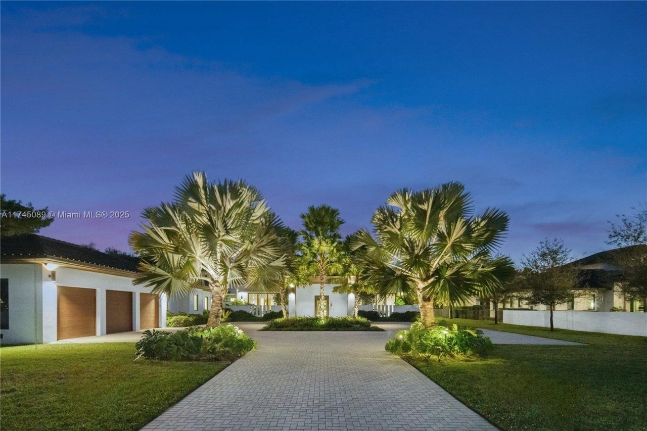 Luxury, sustainability & modern elegance define this stunning 5-bed, playroom+2 den, 6.5-bath Pinecrest estate. Step inside to an open-concept layout with floor to ceiling windows that seamlessly blends style with functionality. The gourmet kitchen features a 6-burner Wolf gas range, pot filler, double ovens, quartz counters & eat-in island for 8. A temp-controlled 504-bottle wine cellar, fireplace, bar, & coffee station completes the space. The primary suite has blackout shades, boutique-style closets & spa-like en-suite. 3 en-suite guest rooms, plus a maids suite with private dog run. Lush landscaping, turf play area, summer kitchen cabana bath & heated saltwater pool/spa create a perfect oasis. Gated entry, whole-house solar panels, & 3-car garage accentuates this high-tech sanctuary.