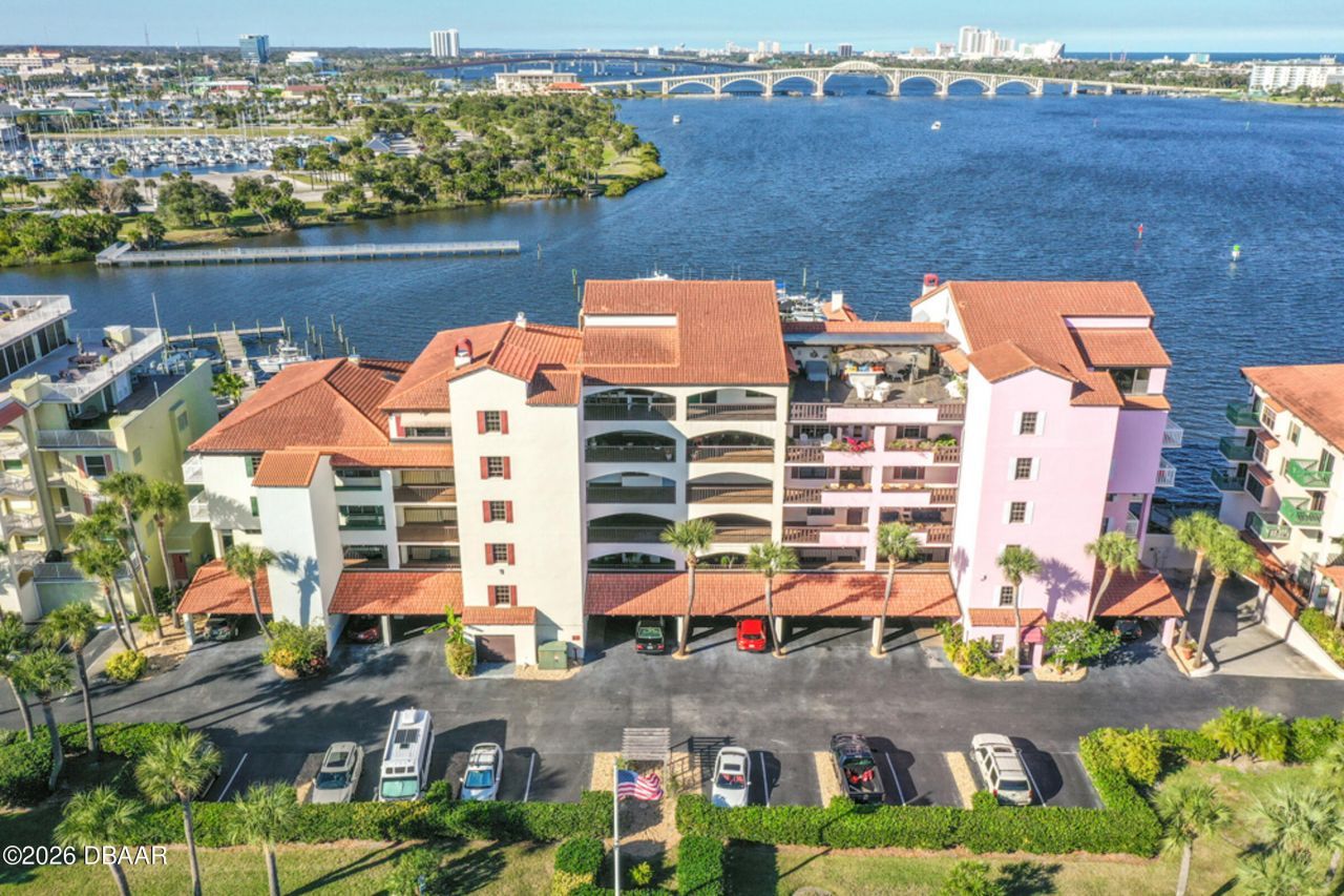 LOCATION, LOCATION, LOCATION! Beautiful 2BR/2.5BA waterfront condo on a peninsula featuring new granite, updated kitchen appliances, and fresh paint. Enjoy panoramic views of the Halifax River and Marina with water views to the north, south, and east from every window.Relax on your large private balcony while watching dolphins, boats, seasonal fireworks, and the illuminated Halifax River Bridge.Ideally located near the beach, shopping, dining, parks, Jackie Robinson Ballpark, library, and Riverfront Esplanade. Walk to downtown or enjoy happy hour at the Chart House.Gated community with pool and boat slips (available for $500/year). Club house can be rented out for parties or special events.Waterfront living at its best!