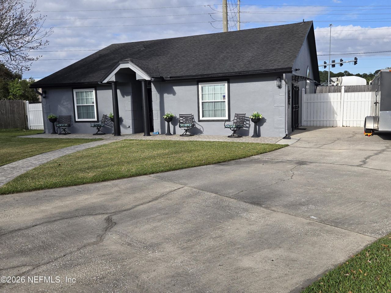 Beautiful furnished short rental retreat! Includes all utilities and lawn care. Open floor plan with ALL tile flooring. Amazing equipped kitchen with expanded luxury granite countertops, nook, pantry and stainless-steel appliances. Indoor laundry with new washer. Open living and dining room areas. Spacious primary suite with newly remodeled bathroom glass enclosure shower and separate sink area. Other 2 bedrooms have walk in closets. Guest bath also fully renovated with glass enclosed shower. Home features high end furniture throughout, a billiard room for entertaining equipped with mini fridge, surround sound stereo and side private entrance / exit.And yes, there is more, huge glass Florida room equipped with fireplace, bar, mini fridge and view of large rear yard. This exquisite home is the perfect spot for those seeking a wonderful temporary home. Convenient location to dining, shopping , NAS JAX and I-295.**CAN CONSIDER RENTING UNFURNISHED, NO PAID UTILIES OR INTERNET FOR $2500.*