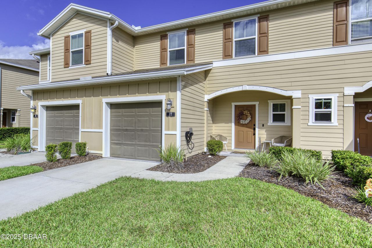 Experience modern, low-maintenance living at 77 Bella Vita Way, an updated townhome in a prime Ormond location. The open-concept layout features elevated finishes, including LVP flooring throughout. The stylish kitchen offers espresso cabinetry, stainless steel appliances, and a large pantry, with an island-integrated sink. Off the main living area, a screened-in porch offers a peaceful retreat.Upstairs, the floor plan includes a conveniently placed laundry room, two ensuite bedrooms, and a massive primary suite with a custom-built closet, double vanity, and a tiled walk-in shower. A main-level half-bath and a one-car garage provide added convenience. Just a short walk to the community pool and clubhouse. The HOA covers roof maintenance, exterior upkeep, internet, basic cable, lawn care, and a termite bond, allowing you more freedom and fewer weekend chores!
