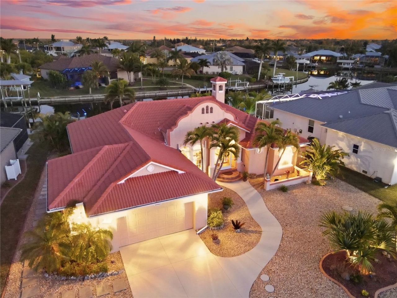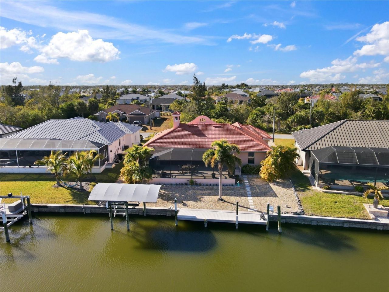 Waterfront living-thoughtfully designed and ideally positioned.Located in the northern section of South Gulf Cove, this beautifully maintained three-bedroom, two-bath waterfront home offers no fixed bridges, quick access to the lock, and approximately ten minutes to Charlotte Harbor and the Gulf. With approximately seventy-five feet of concrete seawall, a 30-foot composite dock equipped with 50amp shore power + a regular 110 service and water capable of accommodating a 45ft yacht plus a 6,500-lb covered boat lift, this setup is designed for real-world boating.Inside, the home features a warm Southwest and Mediterranean-inspired aesthetic paired with a functional, open layout. Double entry doors lead into a vaulted great room where full-length sliders bring in natural light and create a seamless connection to the outdoors. A wood-burning fireplace adds character and comfort, while a flexible adjacent space works well as a home office or formal dining area.The kitchen is both practical and inviting, offering water views, a breakfast bar, and a bright dining area that opens directly to the lanai-ideal for everyday living or entertaining. The primary suite is spacious and well-appointed, featuring a tray ceiling, lanai access, a large walk-in closet, and an en suite bath with soaking tub and walk-in Roman shower.Outdoor living is where this home truly shines. The covered lanai with exposed beams provides an ideal space to relax or entertain, while the stand-alone hot tub offers a private place to unwind. The home was intentionally designed without a pool to keep maintenance low; however, a reinforced stem wall is already in place should a future owner choose to add one.Additional highlights include a new hot water heater (2024), 4-ton 17-SEER A/C system (2023), a recently cleaned tile roof, generous garage storage, attic space, and low-maintenance landscaping with no lawn to mow. An optional HOA, community boat ramp, miles of walking and biking paths, and seasonal neighborhood events further enhance the appeal.Conveniently located between Englewood and Port Charlotte, close to Boca Grande & Englewood beach, golf courses, dining, shopping, and world-class fishing, this home delivers the waterfront lifestyle you've always wanted.