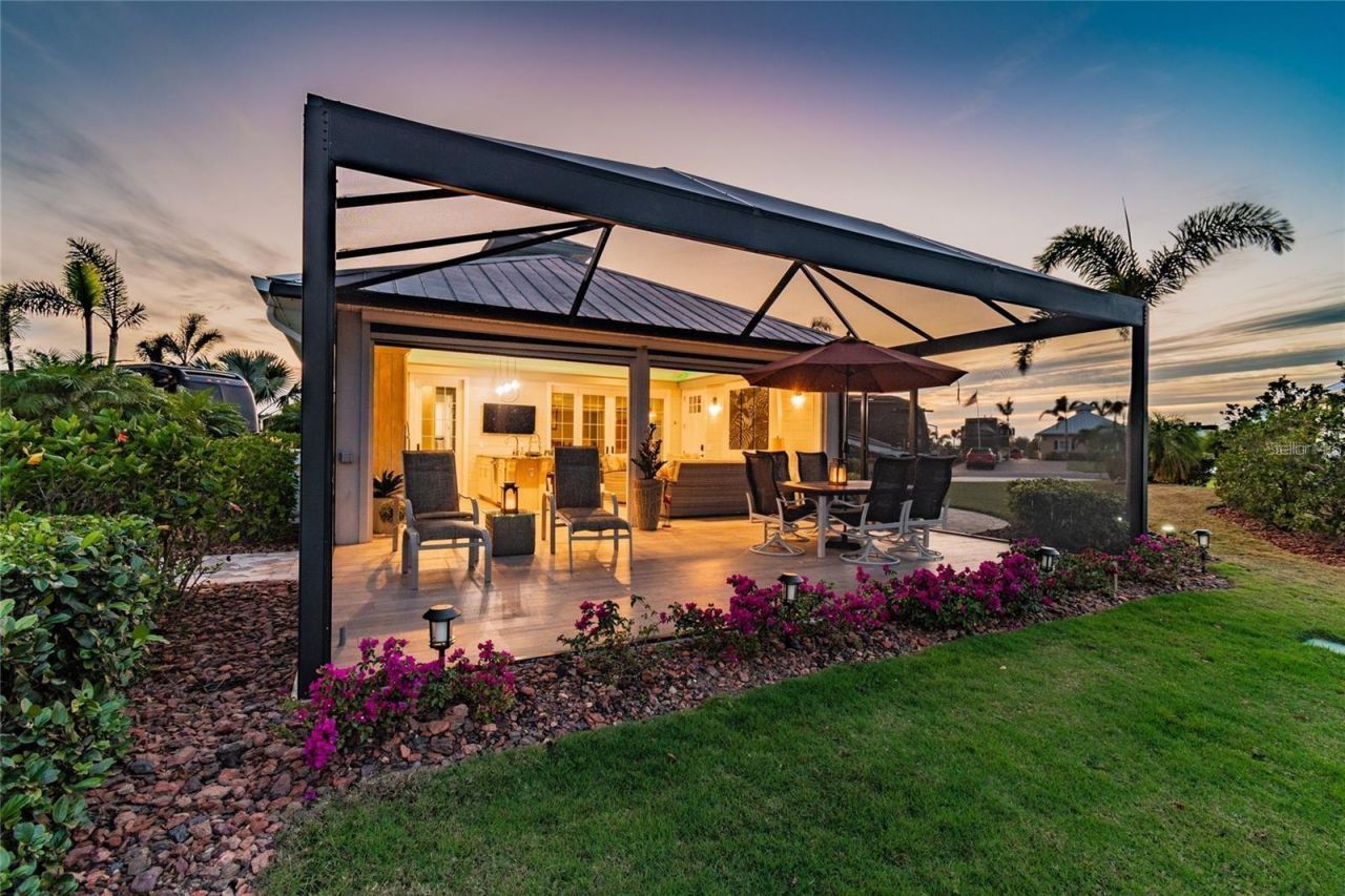 Lot 13 - Premier Luxury Casita with Pull-Through Drive, Furnished Interiors & Waterfront ViewsWelcome to Lot 13 at Thornton Creek Motorcoach Resort-one of the most luxurious and thoughtfully designed casitas in the entire community. This upscale property comes fully furnished with high-end furnishings and designer d?cor, offering a truly turnkey experience.You'll be greeted by an oversized pull-through paver driveway, framed by lush, mature landscaping that provides shade, privacy, and a warm welcome. The spacious layout easily accommodates any size motorcoach with additional guest parking via the circular drive.Inside, the main living area features soaring vaulted ceilings and opens to a screened-in lanai overlooking the tranquil lake. Designed for year-round enjoyment, the space is equipped with motorized Kevlar hurricane screens and motorized Eisenglass, while an electric fireplace adds cozy charm on cooler days.The gourmet kitchen is a standout, featuring a generous island with barstool seating, leathered granite countertops, and top-of-the-line GE Profile appliances, including a built-in gas cooktop. The cabinetry is crafted with basket weave design and an all-weather material, blending upscale design with lasting durability-perfect for both indoor-outdoor living and Florida's climate.Through elegant French doors, you'll find a king-size bedroom suite with its own wine bar just off the kitchen-creating a peaceful and luxurious retreat. The spa-like bathroom features a beautifully tiled walk-in shower with a built-in bench, offering a tranquil escape after a day of fun in the Florida sun. The adjacent laundry room includes full-size appliances, a utility sink, and abundant cabinetry for storage.Lot 13 is a rare offering with every detail designed for comfort, elegance, and elevated resort living. Schedule your private showing today and experience the very best of Thornton Creek.