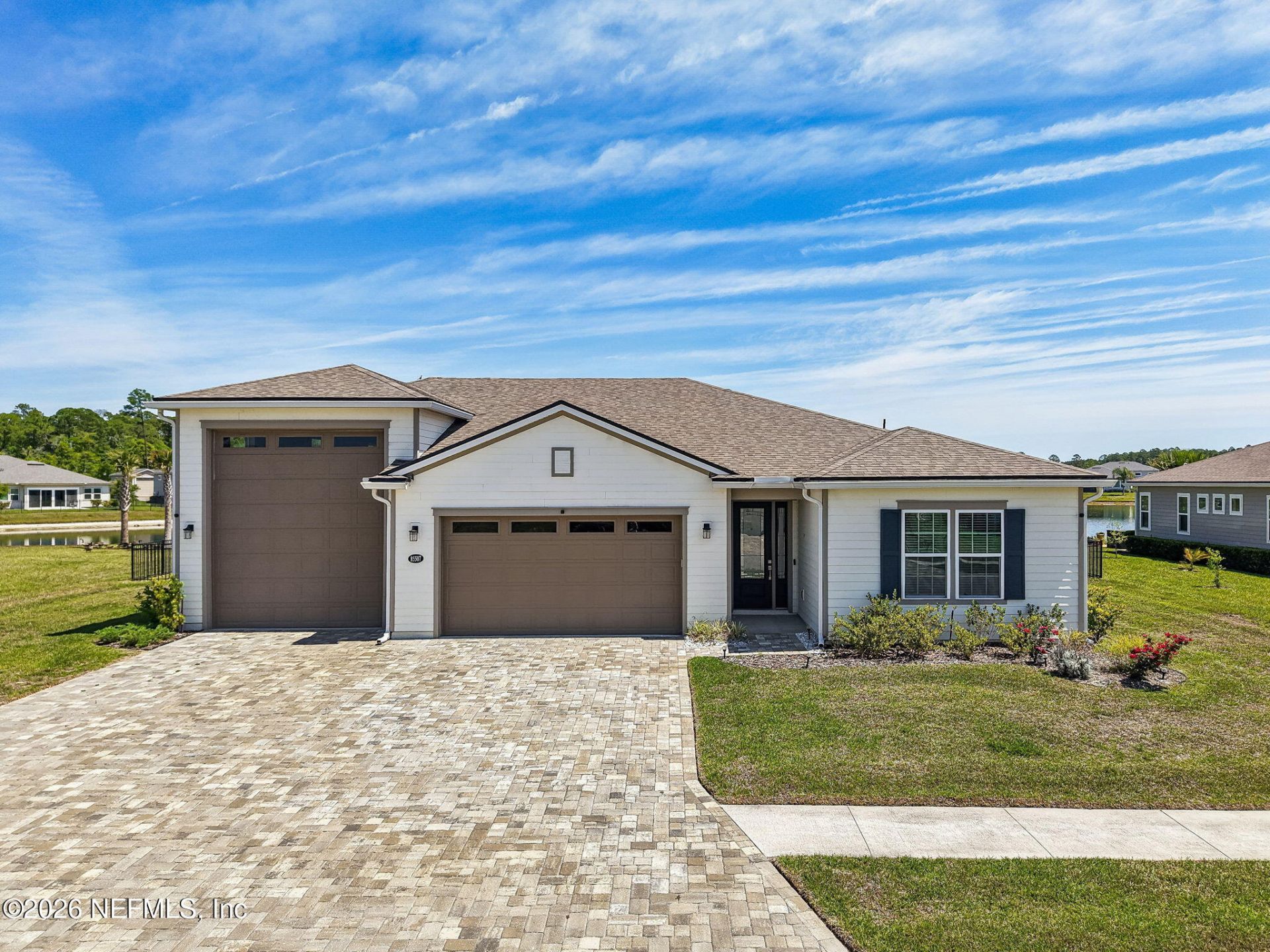 Welcome to 85507 Fall River Parkway in Fernandina Beach, a beautifully upgraded 3-bedroom, 2.5-bath WATERFRONT home on an OVERSIZED LOT in Amelia Walk. This property features a rare 3-car garage plus RV/BOAT GARAGE, paver driveway, and fully fenced yard. Inside offers luxury vinyl plank flooring throughout (no carpet), double glass sliding doors to a screened lanai, and a stunning kitchen with quartz countertops, oversized island, large quartz sink, induction cooktop, and GE Profile appliances. CUSTOMIZED pantry, walk-in primary closet, and laundry room add function and style. Community amenities include a clubhouse, pool with sundecks, fitness center, tennis and pickleball courts, lake with gazebo, playground, and soccer field. With high-end finishes, practical upgrades, and exceptional community features, this home offers both comfort and lifestyle in a prime waterfront setting!