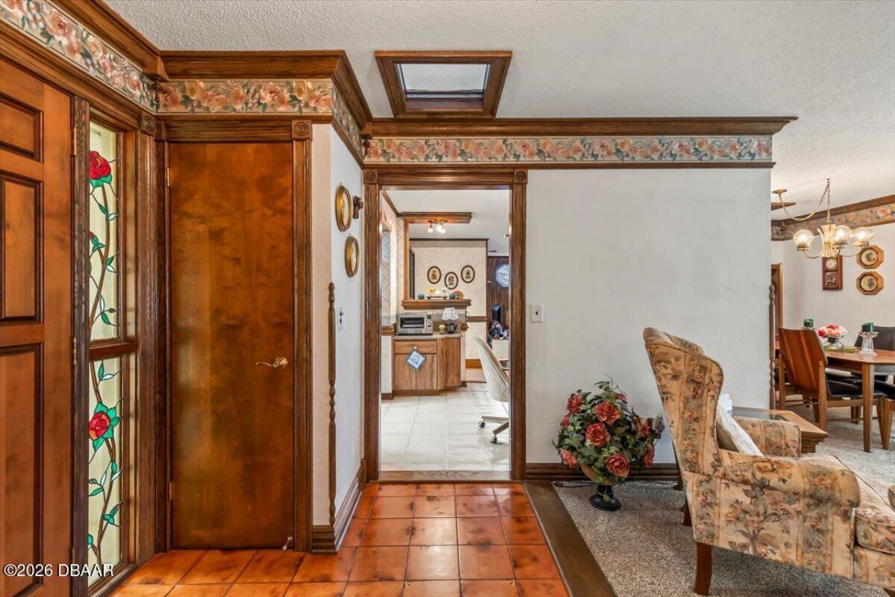 Pride of ownership is evident throughout this one-owner home, originally built as the model and meticulously maintained through the years. The home offers a warm, inviting feel with unique architectural details and quality craftsmanship that you simply don't see in newer construction. The layout is both functional and flexible, featuring an eat-in kitchen, formal dining room, living room, and family room. An enclosed Florida room adds additional living space. The large laundry room offers plenty of storage and space for a second refrigerator and leads into a tiled garage with built-in cabinets and exceptional storage, ideal for hobbies, projects, or staying organized. Recent improvements include a 2023 roof and a transferable termite bond, providing added peace of mind. Located in a highly desirable area of Ormond Beach with a great school zone and easy access to shopping, dining, and the Scenic Loop. No HOA restrictions, giving you the freedom to truly make this home your own. A rare opportunity to own a well-cared-for home with character, functionality, and an excellent location. All information taken from the tax record, and while deemed reliable, cannot be guaranteed.
