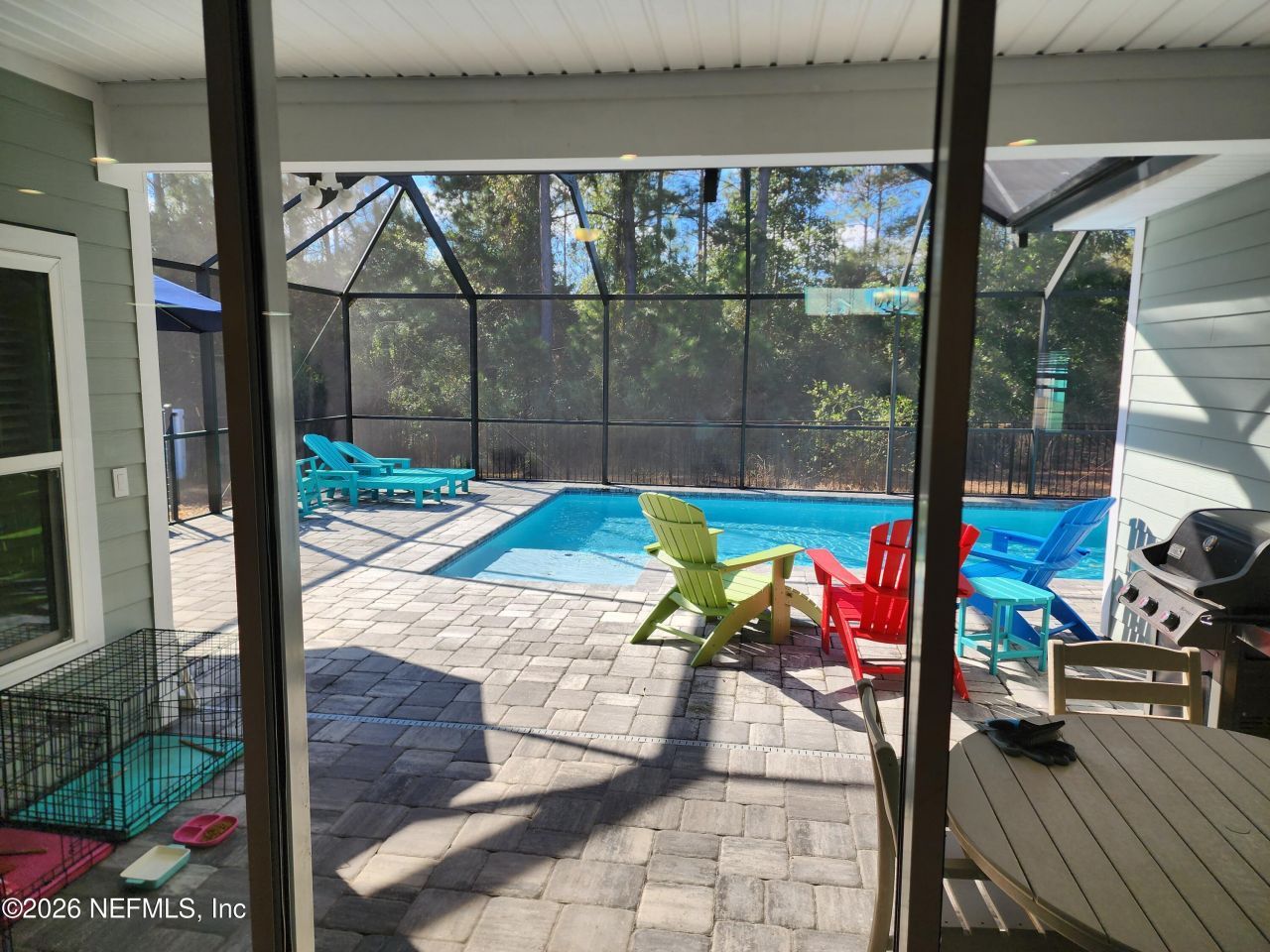 This lovely home has a stunning view from the private, covered pool, to trees and nature from the back yard. The home has smart appliance ovens, quartz kitchen countertops, and a natural gas stove. The primary and 2nd and 3rd bedrooms are on the first floor. The fourth bedroom is the 2nd floor has its own full bathroom for privacy.